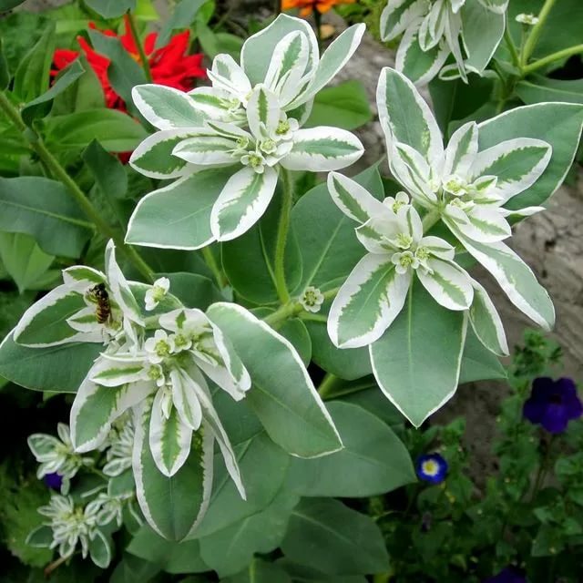 Среди садовых молочаев выделяется эффектной декоративной листвой молочай окаймленный, относящийся к семейству Молочайные, в народе «Горный» или «Ранний Снег». В культуре с 1811 года. Выращивание растения популярно среди отечественных цветоводов, особенно часто используют ландшафтные дизайнеры, если необходимо разделить на клумбах плохо сочетающиеся окраски других цветов. На снежно-изумрудных шаровидных кустиках молочая отдыхает взгляд. В срезке растение стоит больше недели и подчеркивает красоту крупноцветковых культур – георгин, мальв, даже дельфиниумов, но особенной благородной изысканности придает композициям с белыми розами. В садовом оформлении он хорошо смотрится в крупном альпинарии, на средних планах миксбордеров. Прекрасно сочетается с низкорослыми формами елей, можжевельников, туй. Ему к лицу также соседство с почвопокровными очитками, живучкой, зеленчуком. В дикой природе находят целые поля в регионах североамериканского континента, словно снегом покрывающие зелень склонов холмов с середины лета до самых заморозков.