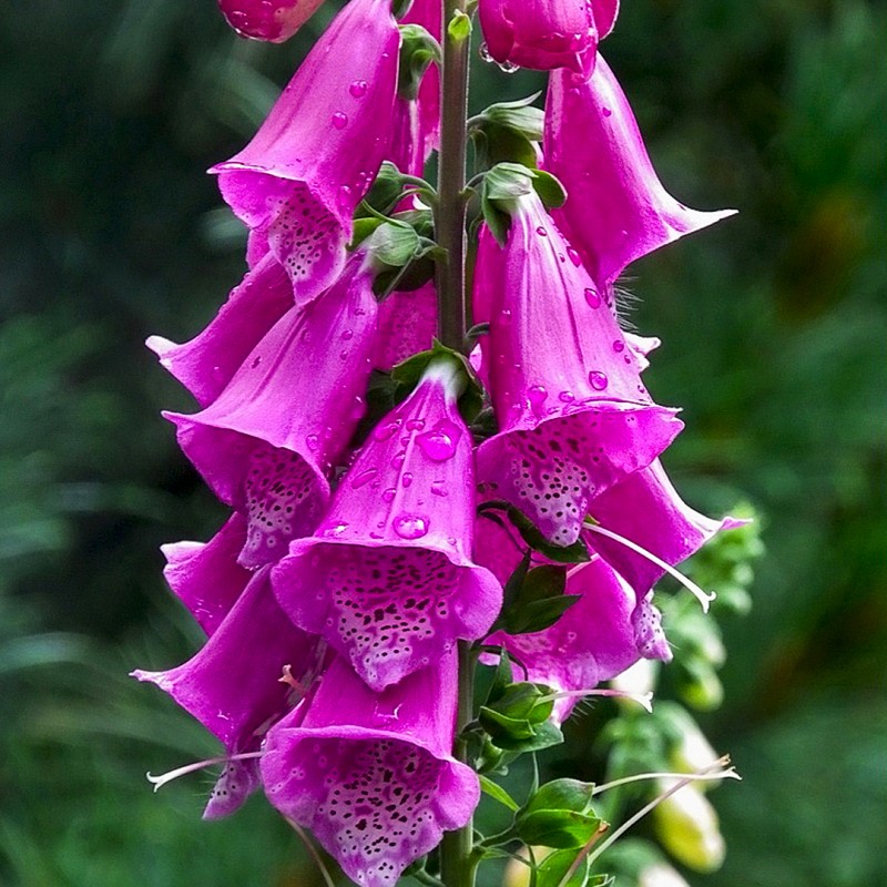 Наперстянка (дигиталис) – травянистое растение, которое исследователи относят к семейству Подорожниковые, род насчитывает около 25 видов, в переводе означает “палец” или “наперсток”, ведь колокольчатый венчик растения напоминает наперсток. Чаще в садоводстве встречается “пурпурная наперстянка”, двулетник, достигающий в высоту полутора метров, часто служит для имитирования дикорастущих трав, а благодаря неприхотливости и ярким соцветиям может стать украшением любого сада. Наперстянка великолепна в больших массивах, смешанных цветниках, миксбордерах и в цветниках типа “природный сад”, расположенных на солнечных или полу тенистых участках. В одиночной посадке растение, как правило, «теряется», лучше смотрится в группах по 10-15 штук. Растения-партнеры — фиалки, настурция для оформления низа.