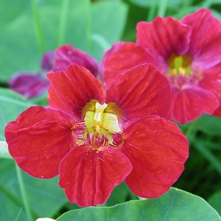 Кустовая настурция с мраморными листьями и крупными малиновыми цветками диаметром 5 см. Растения однолетние, высотой не более 40 см. Быстро развиваются, формируя аккуратный кустик, пышно украшенный яркими съедобными цветками. Сорт подойдет для оформления разнообразных садовых клумб и вазонов. Неприхотливый и устойчивый к болезням культуры – подарок садоводу! Высаженный вдоль грядок в огороде защитит от тли, белокрылки и белянки. Нежные цветки – необычный ингредиент в кулинарии, служат для украшения блюд.