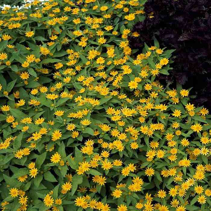 Меламподиум – теплолюбивое растение семейства Сложноцветные (Астровые). Название растения в переводе с греческого означает «черная нога», такое название получили за темные, почти черные, стебли у основания куста. В народе его называют «масляной ромашкой», растение было найдено в заболоченных районах Шри-Ланка всего лишь в начале 80-х годов прошлого века. Вскоре, оно стало фаворитом, как у цветоводов-любителей, так и у селекционеров, буквально за несколько лет появилось множество различных сортов меламподиума, в культуре выращивается только один вид- болотный, в наших широтах культивируется как однолетник. Ценится за способность ярких звездочек-цветочков даже в пасмурную погоду оставаться открытыми. Еще одним достоинством является способность растения к самоочищению: нет необходимости удалять отцветшие цветки. Цветение продолжается с июня по октябрь. Отлично чувствует себя в подвесных кашпо и контейнерах. Чудесное почвопокровное растение, быстро наращивает зеленую массу, за 2-3 недели способно закрыть своими побегами немалую часть земли.