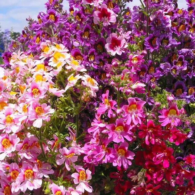 Пёстрые цветки схизантуса, по строению и экзотической окраске напоминают цветки орхидей и сплошь покрывают все растение с июня до осенних холодов. При хорошем уходе на пирамидальном кустике схизантуса цветков бывает так много, что они смыкаются и закрывают прямостоячий, ветвистый от основания, покрытый клейкими волосками стебель и изящные, перисто-разрезные опушённые листья. Цветки неправильной формы с расщепленными лепестками до 2см в диаметре, разнообразные по окраске, с пятнами, точками и полосками разной величины, собраны в рыхлые верхушечные соцветия. Подходит для выращивания в различных цветниках, а также вазах и контейнерах. Может выращиваться как комнатное растение в горшке на подоконнике.