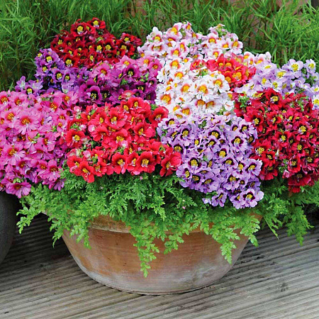 Экзотические цветки, похожие на маленькие орхидеи. По мере нарастания цветения образуют сплошную яркую пирамиду. Зрелище захватывающее! Лист необычный, рассеченный. Цветение обильное и продолжительное.