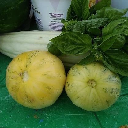 Оригинальное, редкое растение. Плоды завязываются через 70-75 дней после всходов. Свето, влаго и теплолюбивое. Предназначено для выращивания в теплицах. Растение мощное, сильноплетистое, с крупными листьями, похожими на огуречные. Очень требовательно к плодородию почвы. Плоды светло-зеленые, овально-округлые, сладкие, сочные, с тонкой, чуть пушистой шкуркой, 10-12 см длиной. Имеют вкус огурца. Далее плод набирает массу 1-2 кг, приобретает вид, вкус и аромат дыни.