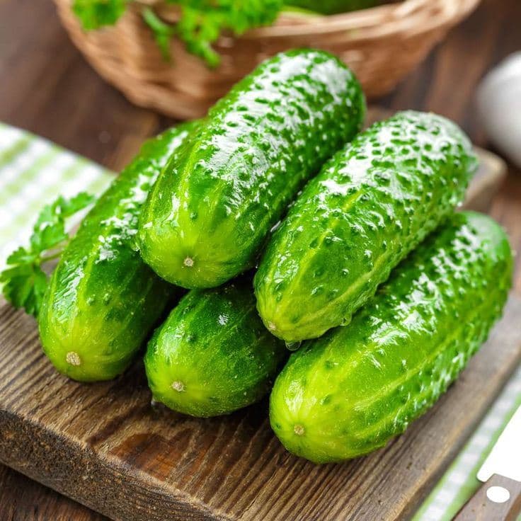 Плоды: эллипсовидные, светло-зеленого цвета, с короткими белыми полосками у основания, крупнобугорчатый, черношипый, длиной 6-8 см, массой 60-70 г.