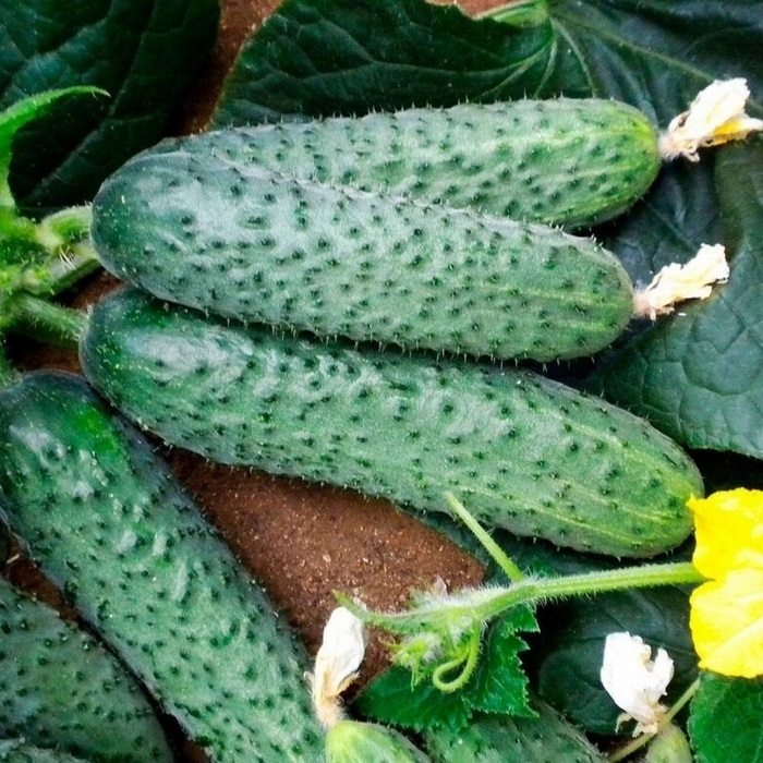 Среднеспелый (52-57 дней) партенокарпический гибрид для выращивания в теплицах и в открытом грунте. Растение мощное, среднеплетистое, с женским типом цветения. Зеленцы цилиндрические, крупнобугорчатые, темно-зеленые с короткими полосками, длиной 13-16см, массой 150-180 г, сладкие, сочные, ароматные, без горечи и без пустот. Урожайность при выращивании в теплицах 14-16 кг/м2.