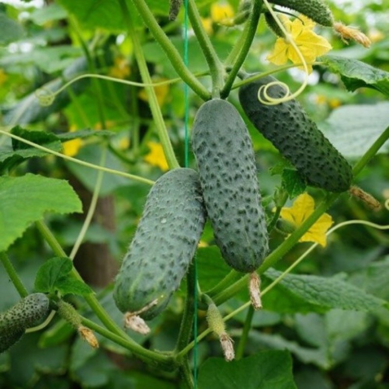 Очень ранний, первый сбор уже на 32 день после появления всходов. В узле формируется 3-5 завязей и более. Зеленцы красивые, цилиндрической формы, темно-зеленые, крупнобугорчатые, без пустот, плотные, тяжелые, длиной 12-14 см. Плоды транспортабельные, долго сохраняют товарный вид после сбора. Мякоть плотная, хрустящая, ароматная. Вкусовые качества превосходные, как в свежем так и в консервированном виде. Плодоношение до ноября, урожайность до 25 кг с кв. метра. В открытом грунте, даже при поздних посевах (конец июня), успевает дать хороший урожай.