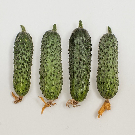 Гибрид среднеспелый, партенокарпический. От всходов до начала плодоношения 42-44 дня. Предназначен для производства пикулей, длиной 3-5 см. Зеленцы генетически без горечи, цилиндрической формы, крупнобугорчатые, белошипые, зеленые с продольными полосами, не перерастают. Гибрид жаростойкий. Букетный тип образования плодов, в пазухе листа 3-5 завязей. Вкусовые качества отличные. Гибрид пригоден для засола и консервирования. Транспортабельность хорошая. Устойчив к кладоспориозу и мучнистой росе, относительно к вирусу огуречной мозаики и пероноспорозу. Плотность посадки 3-3,5 растений/м2. Урожайность зеленцов до 15 кг/м2, пикулей до 7 кг/м2.