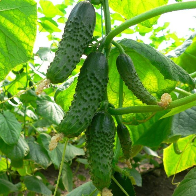 Высокоурожайный пчелоопыляемый гибрид для открытого грунта и пленочных укрытий. Среднеспелый, от всходов до первого сбора плодов 50-53 дня. Растения женского типа цветения, закладывают по 2-3 завязи в каждом узле. Зеленцы длиной 10-12 см, с маленькой семенной камерой, без пустот. Великолепны в соленом и маринованном виде. Гибрид устойчив к МР, ВОМ и корневым гнилям. Урожайность под пленкой – 12-13 кг/м2