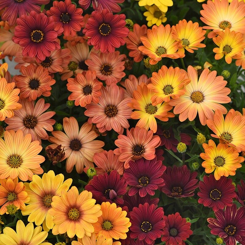 Яркая солнечная смесь! Компактные растения с крупными цветками. Высота 20-40 см. Цветы 5-6 см в диаметре. Тёмно-бордовые, лососевые, жёлтые, оранжево-жёлтые. Хорошо переносит засуху. Регуляторы роста не требуются. Отлично подходит для выращивания в горшках и уличных контейнерах.