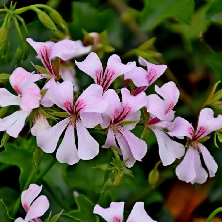 Пеларгония является излюбленным растением цветоводов за яркое и обильное цветение в течение всего сезона. Новая улучшенная серия Reach Out станет идеальным решением вертикального озеленения и для создания долгоцветущего ковра. Сорт Кейтлин с непрерывным образованием простых, звездчатых, сиренево-белых цветков с эффектными фиолетовыми пятнышками, собранных по 5-8 штук в изящные зонтиковидные соцветия на фоне сочной зелени органично впишется в любой уголок вашего сада. Огромные плотные кусты шаровидной формы с крепкими, сильноветвящимися побегами до 80 см длиной и прочными декоративными листьями с оригинальным темным рисунком устойчивы к ветру и дождям.