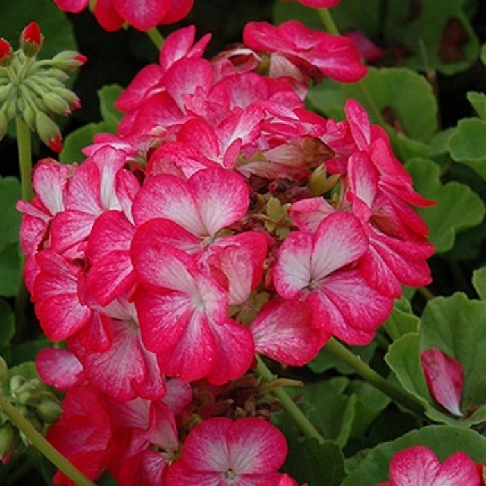 Растения высотой около 35 см. Листья округлые, с темным пятном в форме подковы. Цветы диаметром до 2,5 см малиновые с белым мазком в центре лепестка. Прекрасно подходит для горшечной культуры, летом можно высаживать в открытый грунт и балконные ящики.