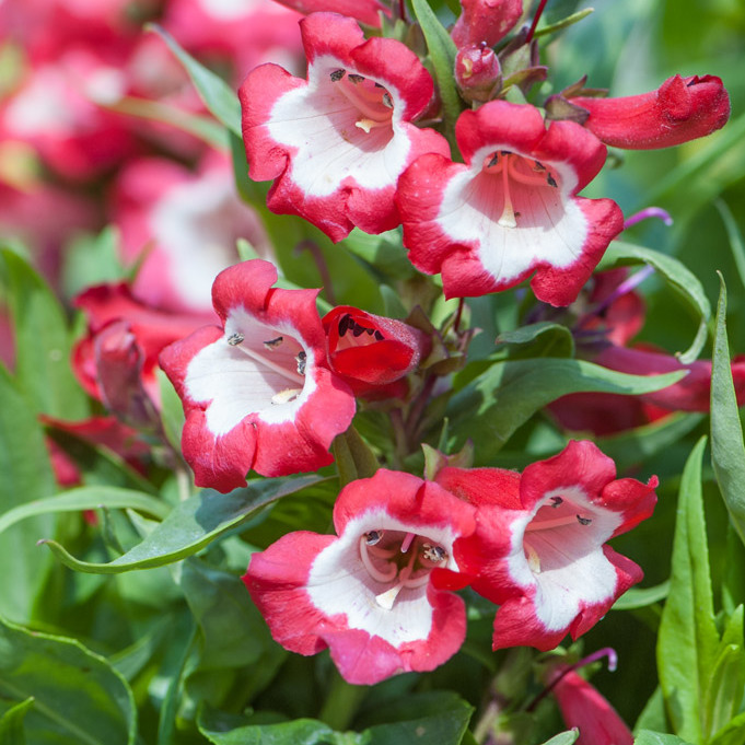 Пенстемон « Изящество и Очарование» внешне похож на львиный зев, узкие глянцевые и броские кисти красных с белым зевом цветков придают растению изящество и очарование, отсюда и его название, обильно и продолжительно цветет, имеет невысокую зимостойкость, поэтому культивируется как однолетник.
