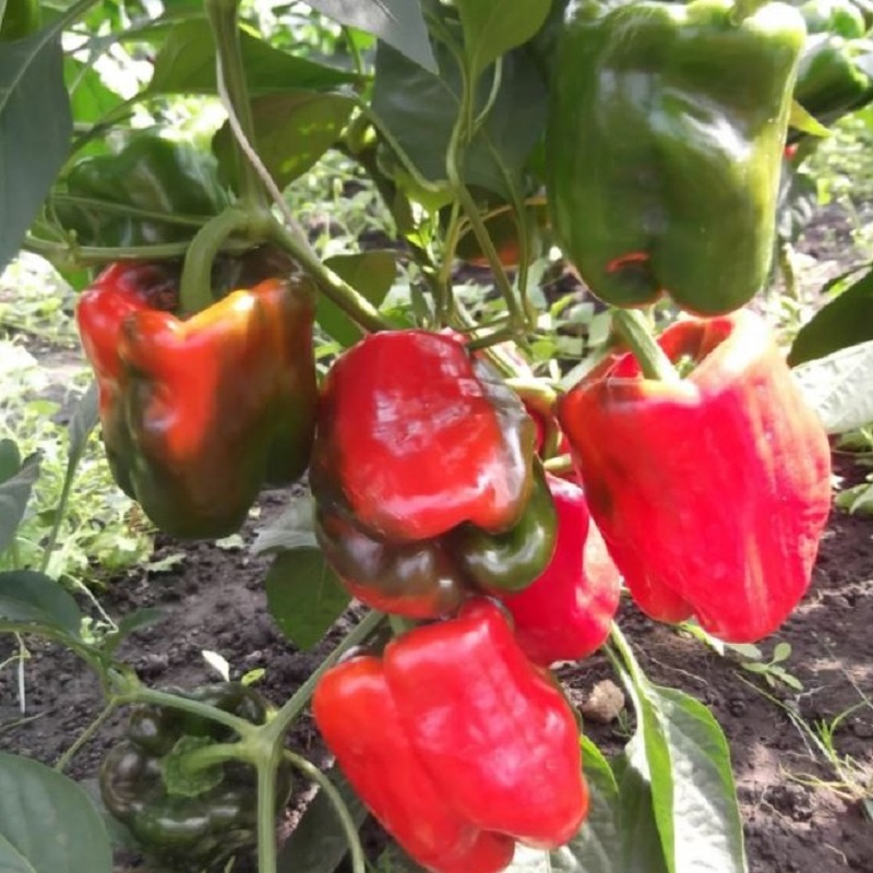 Растения высокие, крепкие, с продолжительным плодоношением, с хорошей нагрузкой плодами. Плоды привлекательные внешне: крупные, сильноглянцевые, сочные, мясистые (толщина стенки 7-8 мм), массой 170-180 г, кубовидные и призмовидные, ребристые 3-4-хгнездные, пониклые, созревают из светло-зеленых в технической спелости в красные в биологической. Вкус свежих плодов отличный. Рекомендуется для потребления в свежем виде, домашней кулинарии и всех видов консервирования.