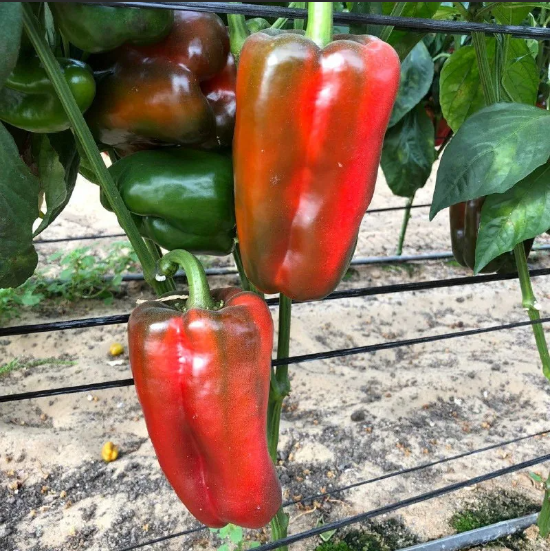 Гибрид раннеспелый. От всходов до технической спе­лости 100-110 дней. Растение среднерослое, компактное. Плоды призмовидной формы длиной 16-18 см, диа­метром 10 см, в технической спелости тёмно-зелёные, в биологической - тёмно-красные, массой 250-300 г Толщина стенки 9-10 мм. Гибрид легко адаптируется к различным условиям выращивания. Устойчив к вирусу табачной мозаики (ТМV1,2).
