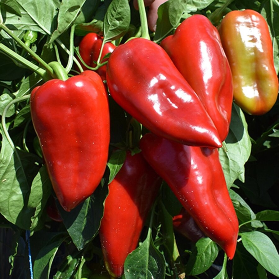 Новинка от селекционеров компании Sakata — раннеспелый высокоурожайный гибрид для открытого грунта с хорошей устойчивостью к вирусам и дружным созреванием плодов. Растение крепкое, устойчивое к повреждениям, отлично выдерживает жару, средней высоты, образует аккуратный куст с мощной корневой системой. Плоды конической формы, выровненные, сочные, сладкие, с приятным ароматом, длиной 10-12 см, шириной 7 см, массой 180-200 г, с мясистыми стенками толщиной до 8 мм. Окраска незрелых плодов светло-зеленая, при созревании — глянцевая красная. Этот красавец-овощ любит тепло и плодородную почву, хорошо хранится. Используют для приготовления лечо, овощной нарезки, салатов, а также тушат, жарят, фаршируют и замораживают.