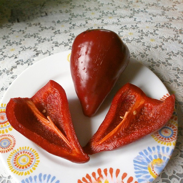 Это раннеспелый сорт перца, который радует своим урожаем уже через 105-110 дней после появления всходов. Период плодоношения растянутый. Первые перцы могут созреть уже в июле, а затем растение будет радовать вас урожаем до самых холодов. Кусты этого перца невысокие и компактные, достигают высоты от 40 до 70 см. Плоды имеют сердцевидно-конусовидную форму, вес каждого из них составляет 150-200 г. У перцев острый носик и необычный фиолетово-бордово-малиновый цвет. Данный сорт отличается высокой урожайностью: при правильном уходе каждый куст может дать до 35 плодов. Кроме того, он неприхотлив и устойчив к болезням. Мякоть перцев сочная, хрустящая и очень сладкая. Стенки плодов толстые и мясистые, их толщина составляет 9-12 мм. Вкус ярко выраженный, с фруктовыми, ягодными, пряными и ореховыми нотками. Этот сорт отлично подходит для свежего употребления, фаршировки и всех видов консервирования. Перцы не только обладают потрясающим вкусом, но и хорошо хранятся, не подвергаясь гниению.