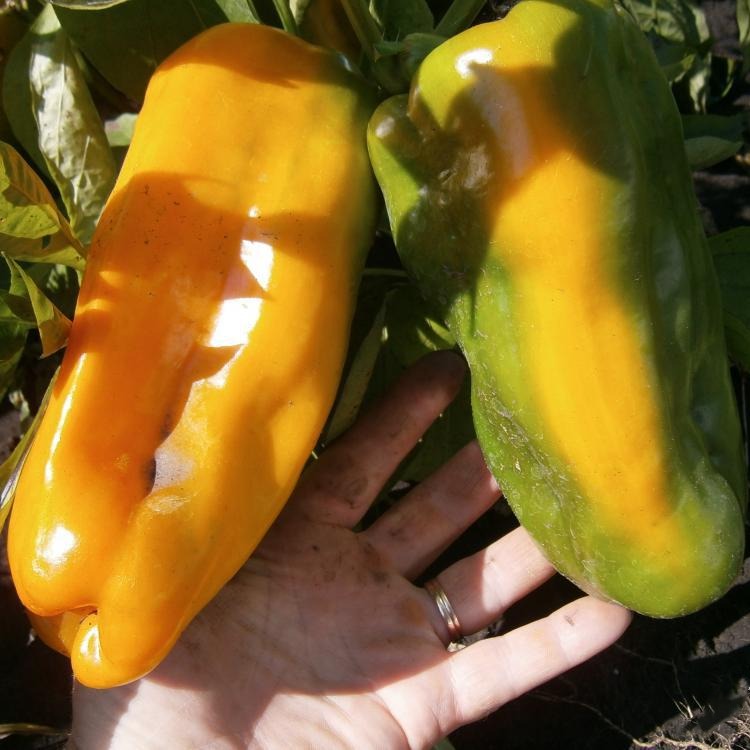 Непревзойдённый рекордсмен по размеру и толщине стенки! Среднеранний сорт сладкого перца. К сбору плодов приступают через 105-115 дней, считая с момента появления всходов. Растения среднерослые и имеют зонтиковидную форму, благодаря чему плоды защищены от солнечных ожогов. Плоды кубовидно-призматической формы отличаются очень крупными размерами (стандарт 300 г), при надлежащей агротехнике вырастают до 500 г. Мякоть плодов очень сочная и толстая, толщина стенки 10-14 мм. В стадии полного созревания плоды окрашены в ярко-жёлтый цвет. В технической спелости плоды темно-зелёные. Данный перец необычайно вкусен при употреблении в свежем виде, а также идеально подходит для приготовления лечо и соусов. Имеет высокую устойчивость к вирусным заболевания. Наибольшие урожаи достигаются при ведении тепличной культуры, но и в открытом грунте показывает отличные результаты.