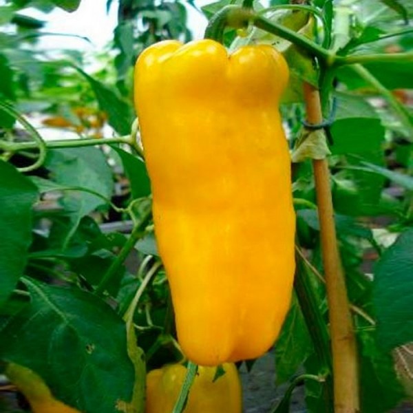 Русская мощь!!! Раннеспелый (90-105 дней), высокоурожайный сорт, с плодами гигантами. Растение высотой до 70 см, мощное, среднеоблиствлённое, средневетвистое. Плоды удлинённо-цилиндрической формы, с тупым концом, длиной до 25 см и массой 300-500 г. Нередко формируются плоды-великаны, массой до 700 г! Толщина стенки до 12 мм. Плоды очень сладкие, сочные, с сладко-десертным, перечным вкусом. Болезнестойкий, высокоурожайный куст, способен дать до 1 ведра красивых, крупных перцев.