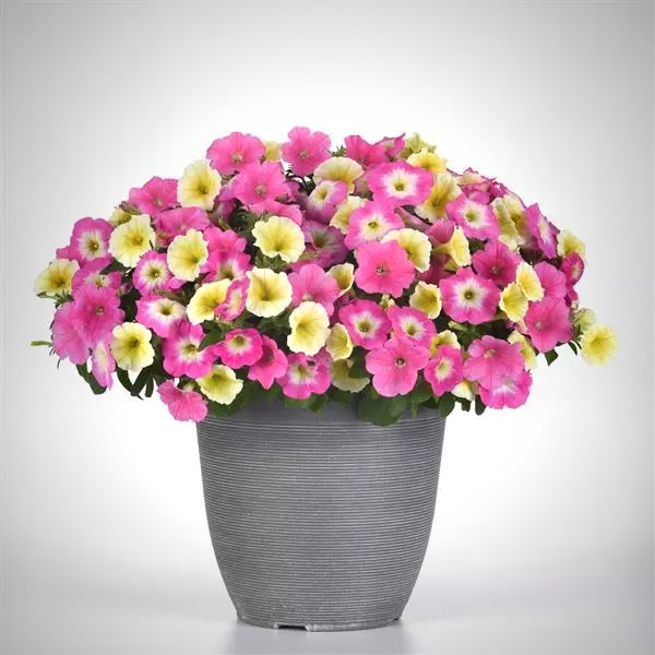 Более раннее цветение, по сравнению с серией Easy Wave. Высота растения 15-30 см, ширина куста 60 см. Множество крупных цветков диаметром 5-7 см. Растения хорошо разрастаются, формируя плотный куст с крупными цветками и лишь потом разрастаются в стороны. Яркая гармоничная смесь состоит из трех окрасок - белой с желтыми жилками, ярко-розовой и розовой с белой горловиной. Трехмерный ландшафтный эффект для создания впечатляющих корзин и вазонов.