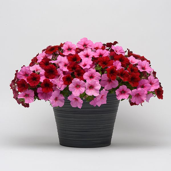 Растения быстрорастущие, хорошо ветвящиеся. Плети сильные, устойчивы к ломкости, длиной до 80-100 см. Формируют множество крупных цветков диаметром 5-7 см. Смесь состоит из ярко-розовой и насыщенно-красной окрасок. Отличная устойчивость к неблагоприятным погодным условиям. Великолепно подходит для подвесных корзин, кашпо, балконных ящиков.