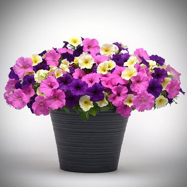 Растения быстрорастущие, хорошо ветвящиеся. Плети сильные, устойчивы к ломкости, длиной до 80-100 см. Формируют множество крупных цветков диаметром 5-7 см. Смесь состоит из розовой, сине-фиолетовой и кремовой с жёлтыми жилками окрасок. Отличная устойчивость к неблагоприятным погодным условиям. Великолепно подходит для подвесных корзин, кашпо, балконных ящиков.