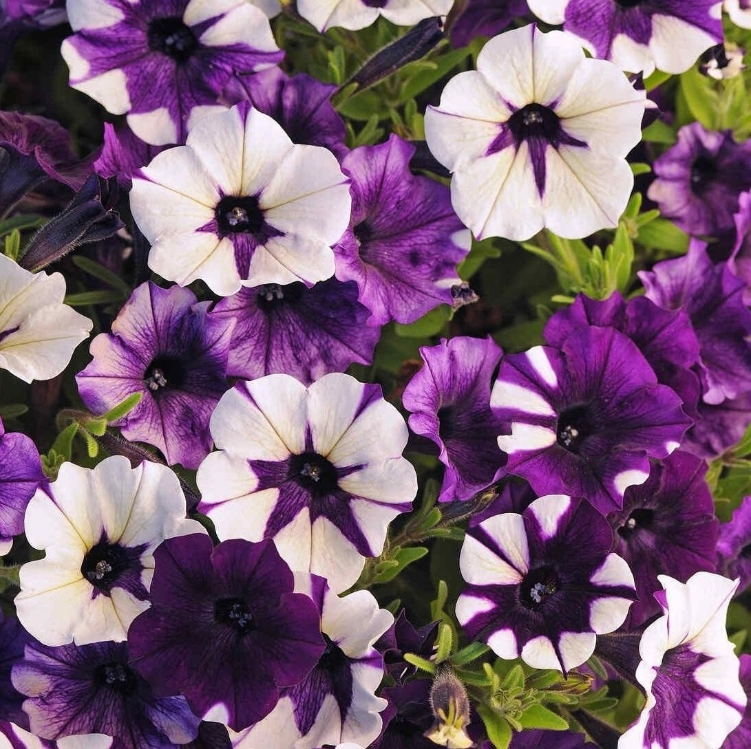 Растения, сильно разрастающиеся с отличным ветвлением. Плети сильные, устойчивы к ломкости, длиной – до 75-90 см. Весь куст усыпан многочисленными цветками диаметром 4-5 см. Уникальная петуния, на одном растении цветки разнообразной окраски. Окраска варьируется в зависимости от температуры и интенсивности света. Цветение раннее и продолжительное (до первых заморозков). Хорошо переносит плохие погодные условия. Идеальный выбор для вертикального озеленения – посадки в подвесные кашпо и балконные ящики.