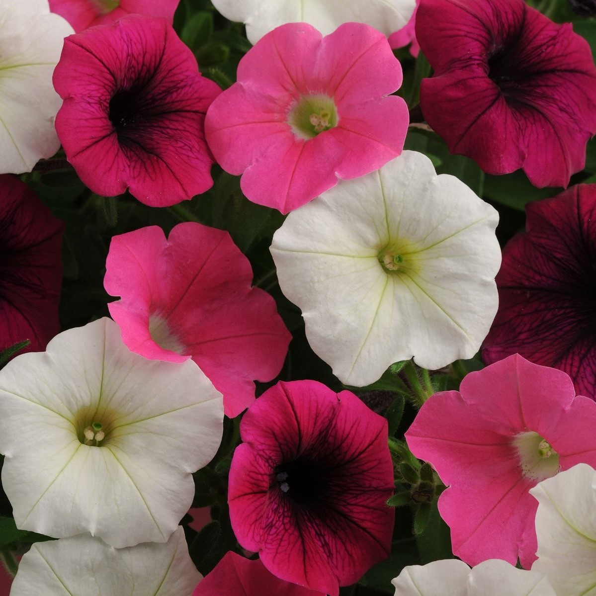 Растения, сильно разрастающиеся с отличным ветвлением. Плети сильные, устойчивы к ломкости, длиной – до 75-90 см. Весь куст усыпан многочисленными цветками. Размер цветков – 4-5 см. Смесь составлена из трех окрасок – белой, розовой и темно-бордовой с бархатным отливом. Цветение ранее и продолжительное (до первых заморозков). Хорошо переносит плохие погодные условия. Идеальный выбор для вертикального озеленения – посадки в подвесные кашпо и балконные ящики.
