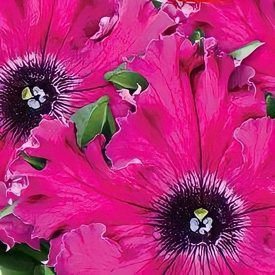 Волнисто-бахромчатые цветки насыщенного оттенка  Ø 8-9 см. Вместе выглядят словно пышное кружевное пурпурное облако. Растения кустовые, ветвистые, высотой до 35 см. Не требуют дополнительного формирования кустов. Обильное цветение продолжается вплоть до наступления заморозков. Гибрид рекомендуется для контейнерной культуры и цветников. При выращивании в вазонах образует небольшой каскад. В период цветения посадок рекомендуется предусмотреть защиту от дождей и сильного ветра.