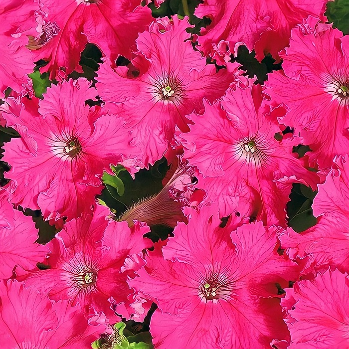 Волнисто-бахромчатые цветки насыщенного оттенка диаметром 8-9 см. Вместе выглядят словно пышное кружевное розовое облако. Растения кустовые, ветвистые, высотой* до 35 см. Не требуют дополнительного формирования. Обильное цветение продолжается вплоть до наступления заморозков. Гибрид рекомендуется для контейнерной культуры и цветников. При выращивании в вазонах образует небольшой каскад. В период цветения посадок рекомендуется предусмотреть защиту от дождей и сильного ветра.* Высота растений зависит от условий выращивания.