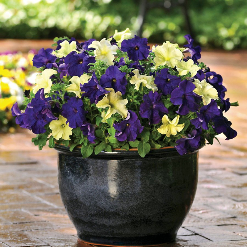 Встречайте еще одну блистательную петунию, которая не может не вызывать восхищения! Настоящий шедевр предстоящего сезона!На протяжении всего лета будет раскрывать многочисленные, очень крупные цветы темно- синей и лимонно-желтой окрасок. Быстрорастущий и ранний гибрид с неукротимой мощью цветения, густо покрывает компактный кустик и великолепно подходит для оформления комфортных и романтических уголков для отдыха. Незаменима также для клумб, рабаток, балконов и лоджий. Очень устойчива к жаре, дождю и ветру.