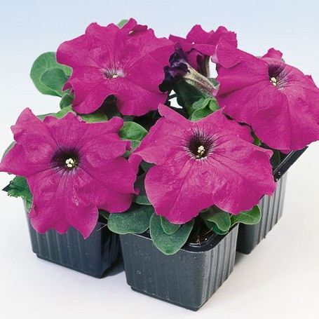 Фантастическое сочетание компактных кустов и гигантских, Ø 10-12 см цветов! В ограниченном объеме горшков и вазонов эти петунии голландской селекции вырастают не выше 10-15 см (на клумбах и грядках высота кустиков может достигать 25 см при ширине 25-30 см). Растения хорошо ветвятся, а укороченные междоузлия не позволяют кустикам оголяться в середине. Зацветают очень рано. Для более пышного цветения рекомендуем регулярно подкармливать посадки комплексным удобрением и убирать отцветшие цветки.