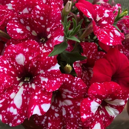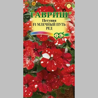 Серия петуний Млечный путь открывает тайны новых ярких созвездий, очертания таинственных галактик, и звездные карты составленных природой на лепестках цветов. Подчиняясь земным условиям, живые «телескопы» изменяют частоту и интенсивность своих белых рисунков при жаркой или меняющейся погоде. Благодаря своему привлекательному виду и цветкам ярко красной окраски с вкраплением белых, хаотично расположенных пятнышек станут поистине королевским украшением любой композиции в саду, на клумбах, подоконниках, балконных ящиках или вазонах. Растения компактные, высотой 30-35 см, отлично ветвятся. В течение всего сезона радуют своим обильным и долгим цветением, сохраняя прекрасный вид даже после сильных дождей.