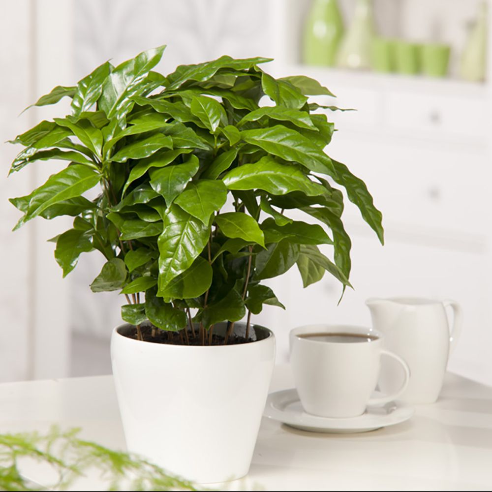 Многолетник. Кофе - вечнозеленый кустарник, у себя на родине произрастает в качестве подлеска в тени высоких деревьев. В комнатных условиях достигает не более 1 м высоты, а карликовый сорт Нана — не более 40-50 см. Листья большие, кожистые (10-15 см), слегка волнистые. Цветки — белые, крупные, ароматные. Плоды — эллиптические ягоды красного или фиолетово-синего цвета .