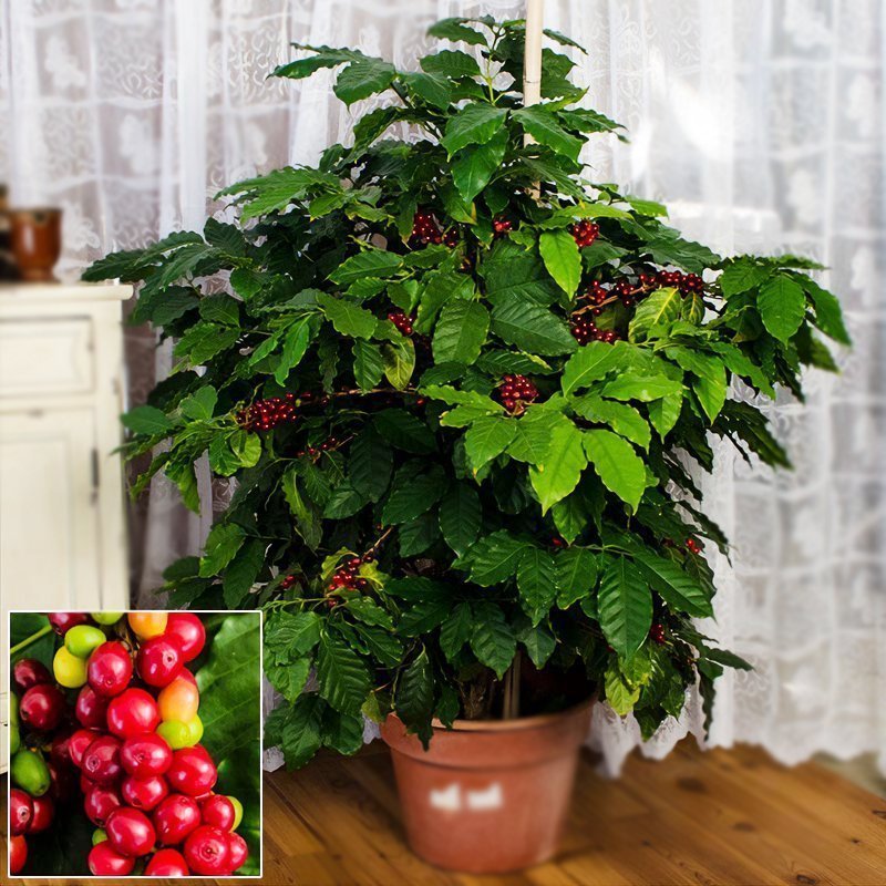 Красивое вечнозеленое растение, прекрасно поддающееся формировке с помощью прищипывания и обрезки. Листья крупные, волнистые по краю, насыщенного темно-зеленого цвета с глянцем. Цветки белые, душистые, собраны по несколько штук в пазухах листа. На смену им появляются съедобные красные ягоды кисло-сладкого вкуса, напоминающие вишню, с зелеными зернами внутри. С дозрелых плодов снимают мякоть, а зерна подсушивают в хорошо проветриваемом помещении. Высушенные кофейные зерна поджаривают на сковороде или в духовке.
