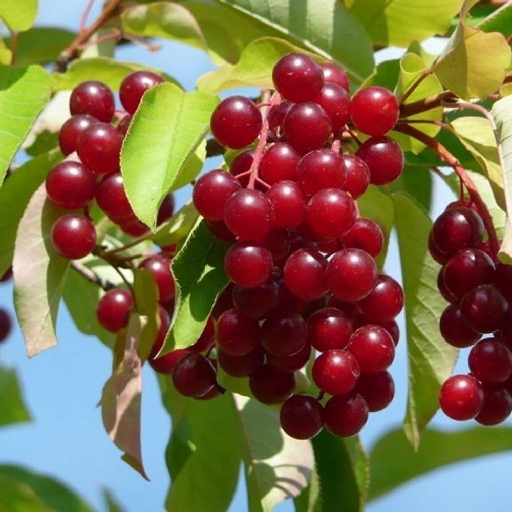 Черемуха виргинская или красная – растение из рода «слива». Представляет собой многоствольный куст или дерево с округлой, слегка «приплюснутой» раскидистой кроной высотой в пределах 5-7 м. Растет оно быстро, в год прибавляя до 0,5 м. Кора на молодых побегах темно-бурая. Осенью дерево выглядит очень нарядно, «переливаясь» разными оттенками, от ярко-малинового до темно-бордового. Соцветия кистевидные, длиной около 15 см. Каждое состоит из 40-70 бутонов. Цветы мелкие (до 1 см в диаметре), белоснежные, с легким ароматом. В последних числах августа вызревают довольно крупные (до 1 см в диаметре), округлые, сочные ягоды. Их цвет варьируется от темно - алого до пурпурного. Взрослое дерево приносит 3-8 кг ягод. Дерево активно плодоносит на 4-й год жизни. Высевают семена осенью, взойдут весной. Если осенью не успели, то важно знать: семена черемухи нуждаются в стратификации в течение 4-х месяцев.