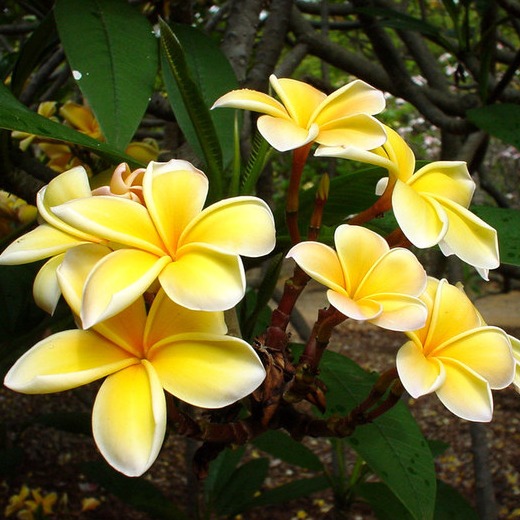 Имеет чарующие цветки желтого цвета. Природа наделила плюмерию волшебным благоуханием. Это растение имеет также другое красивое название "франжипани", которое получило в честь итальянского дворянина, создавшего парфюм с использованием этого цветка. На родине растет очень популярно. Его цветами девушки украшают прически или одежду, ведь бутоны долгое время не уведают и сохраняют прекрасный аромат. В Лаосе и на Бали цветы этого дерева - национальный символ. Высота плюмерии в домашних условиях может достигать 1,5 м. Цветы растения способны менять свой цвет в последствие резкой перемены окружающей среды.