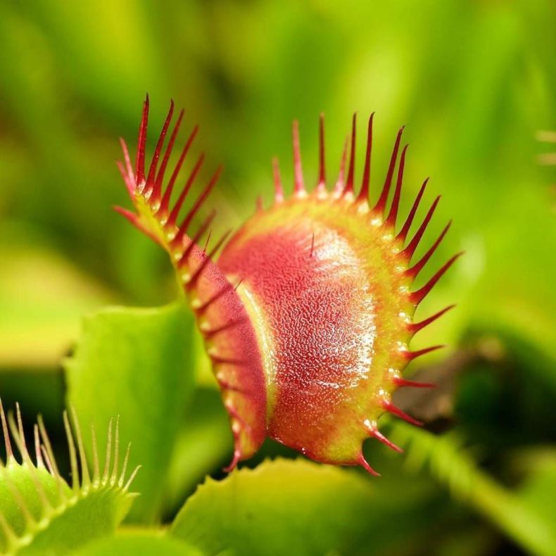 Венерина мухоловка ловит насекомых (муравьев, жуков, кузнечиков) и паукообразных (пауков) при помощи своего легендарного ловчего аппарата, который представлен краевыми частями листьев. Зубастая ловушка захлопывается в тот момент, когда тонкие триггерные волоски на поверхности листьев подадут сигнал. Для того, чтобы «пасть» растения захлопнулась, необходимо оказать механическое воздействие минимум на 2 волоска с промежутком времени не менее 20 секунд.