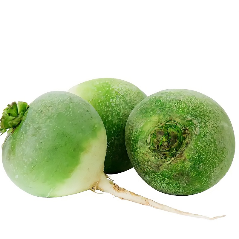 Среднеспелый (60-80 дней от посева до уборки) сорт. Корнеплод зеленый, округлый или удлиненно-округлый, диаметром до 10 см, массой 200-400 г, поверхность гладкая или слегка бороздчатая. Мякоть нежно-зеленого цвета, сочная, хрустящая. Вкус неострый. Лежкость высокая.