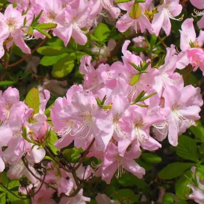 Является одним из самых красивых листопадных рододендронов. Крона широкораскидистая, диаметром больше, чем высота куста. Во время цветения весь куст усыпан многочисленными ароматными светло-розовыми с пурпурными крапинками соцветиями. Цветки колокольчатые до 10 см в диаметре. Используется для посадки в одиночных и групповых композициях. Зимостоек. Преимущественно листопадной формы; в наших климатических условиях у вечнозеленых видов в сильные морозы листья почти всегда обмораживаются и растение приобретает неприглядный вид, чего нельзя сказать о листопадных рододендронах , при этом листопадные формы более выносливы.