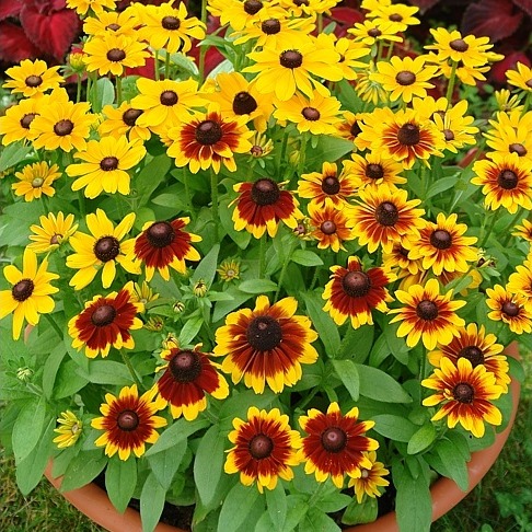 Единственная карликовая рудбекия, предлагаемая в семенах. Многолетнее растение, выращиваемое как однолетник – обильное цветение в год посева. Специально обработанные семена для профессионального выращивания. Позволяют получить растения одинакового высокого качества. Рано зацветающая, первые цветки в июне. Очень компактные, жесткие, не поражающиеся болезнями и вредителями ярко-цветущие растения.