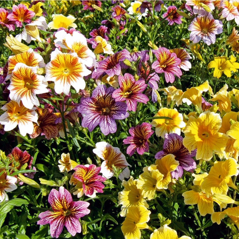 Сальпиглоссис – южноафриканский посланец яркой красоты. Если вы увидите контрастные узоры в сочетании нежных светлых лепестков и ярчайшей сердцевины с оригинальным «мраморным» рисунком, знайте – это сальпиглоссис, красивейшее растение с многообразными цветовыми оттенками. Изюминкой его цветков является восхитительно нарядная золотистая «сеточка». Растение принадлежит к семейству Пасленовые.