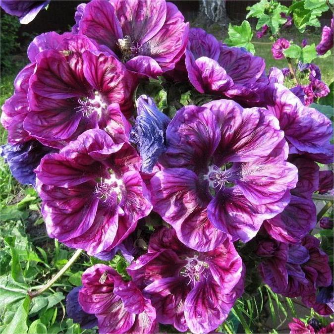 Мальва лесная – многолетнее растение, выращиваемое как двулетник и культивируемое с глубокой древности египтянами, греками и римлянами. На Кавказе его до сих пор употребляют в пищу. Мальва Мавританская красавица - необыкновенный сорт мальвы лесной с уникальной, неповторимой окраской. Это величественное, стройное растение с очень крупными цветками бордово-фиолетовой окраски с более темными штрихами и полосками, собранными в гигантские соцветия - вытянутые кисти. Сорт неприхотливый, засухоустойчивый, предпочитающий солнечные места. Не переносит переувлажнение грунта. Шелковистые цветки сплошь покрывают высокие, сильные цветоносы и на протяжении нескольких месяцев будут радовать своей красотой. Это растение найдет широкое применение в декорировании стен и оград, и, конечно же, в срезке. Широко может использоваться для посадок на заднем плане всевозможных цветников. С его помощью можно создавать цветочные композиции в компании с яркими однолетниками, средне рослыми и высокорослыми многолетниками. Срезанные соцветия в бутонах великолепно распускаются в воде.