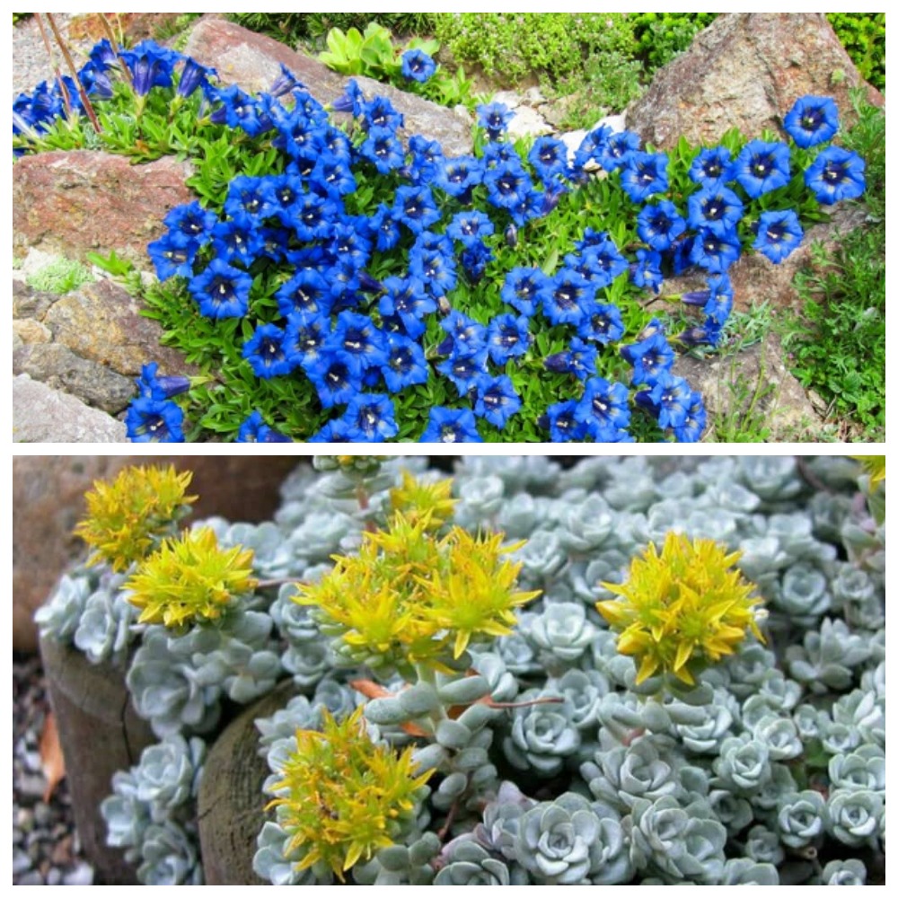 Седум (очиток) Каменная роза (Sedum acre) + Горечавка Синий бархат (Gentiana acaulis)