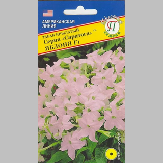 Однолетнее растение. Серия "Саратога" представляет собой карликовую форму крылатого табака, высотой 25-30 см, шириной 25-30 см. Листья широкие, покрыты жилистыми волосками. Цветки воронковидные, крупные, до 5-8 см в диаметре, ароматные, собраны в рыхлые метельчатые соцветия. Цветки открываются к вечеру или в пасмурную погоду. Используют табак для групповых посадок, миксбордеров, рабаток, красиво смотрится в керамических вазах. Табак особенно хорош для затенённых балконов (северной и северо-западной ориентации). Переносит соседство низкорослых растений: петунии, лобелии или агератума, сочетается с сальвией.