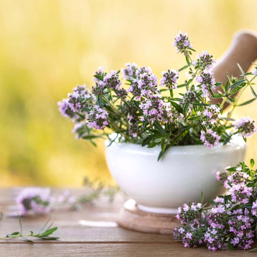Многолетний полегающий кустарник высотой 15 см. Всё лето он покрыт сплошным ковром лилово-розовых цветков, которые наполнят Ваш сад восхитительными ароматами. Тимьян является одним из лучших медоносов, из него получается очень душистый мёд. Так же, тимьян – популярная пряность, добавляемая к копченостям, паштетам, творогу, грибам, мясу. Листья и молодые побеги тимьяна употребляют как салат, для засолки огурцов. Настои, отвары и экстракт тимьяна помогают при заболеваниях дыхательных путей, астме и туберкулёзе. Он обладает бактерицидным, успокоительным, болеутоляющим и ранозаживляющим действием. Его применяют при невралгии, различных неврозах, как потогонное, мочегонное и противогипертоническое средство. Наружно используется в виде ванн и примочек при болях в суставах и мышцах, при ревматизме, как ранозаживляющее при кожных болезнях.