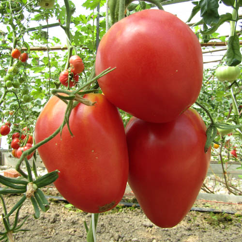 Отличный среднеранний сорт. Прежде всего придется по душе любителям крупных и мясистых томатов. Сорт детерминантный, низкорослый высота растения составляет примерно 80 см, подходит для выращивания как в защищенном, так и в открытом грунте. Урожайность сорта составляет до 9 кг с 1 м2. Плоды почковидной формы, глянцево-красные, отличного вкуса, очень крупные, завязываются через 1-2 листа. Средний вес плодов 500 г, некоторые до 800 г. Удачный среднеранний сорт сибирских селекционеров.