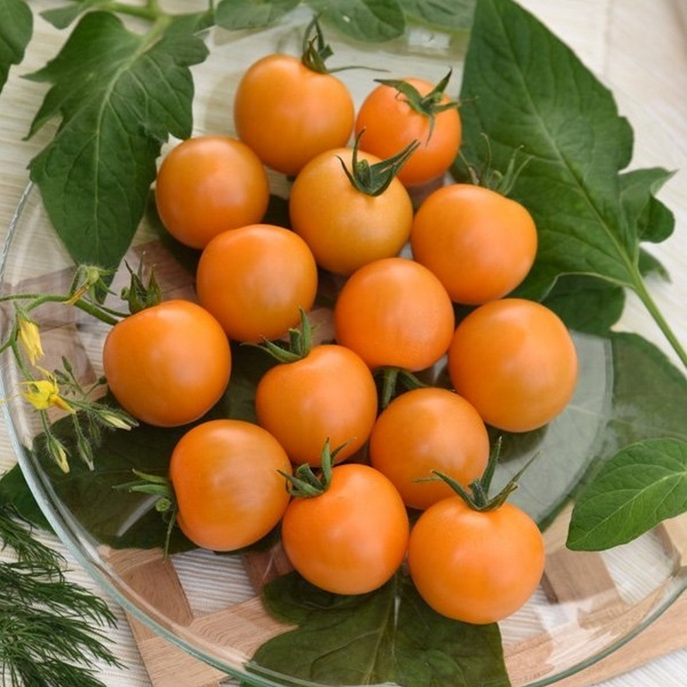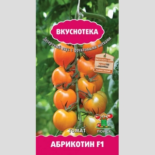 Необычная абрикосовая окраска и великолепный десертный вкус. Раннеспелый гибрид для пленочных теплиц. Период от всходов до начала плодоношения 95-100 дней. Растение индетерминантное, высотой 150-170 см, нуждается в подвязке, формировка в 1-2 стебля с удалением пасынков. Обильный, неприхотливый. Плоды округлые, гладкие, блестящие,  массой 16-20 г, собраны в красивые компактные кисти по 12-14 штук. Окраска желто-оранжевая (абрикосовая). Вкус кисло-сладкий с фруктовыми нотками. Пригоден для уборки целыми кистями. Устойчив к вирусам, фузариозному увяданию, бурой пятнистости листьев.