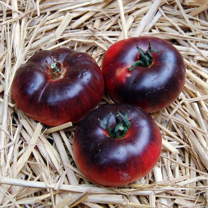 Среднеспелый, 105-110 дней. Индетерминантный, растение мощное, сильнооблиственное. Лист темно-зеленый. Урожайный. Плоды плоско-округлые, многокамерные, в технической спелости черные из-за высокого содержания антоцианов, что придает им дополнительную ценность онкопротектора, массой до 500-600 г. В среднем 250 г, вкусные, сочные. При созревании на поверхности кирпично-красные с черным. Мякоть ярко-красная. Вкус ярко-томатный, с фруктовыми нотками и сладковатым послевкусием. Очень хороши в салатах и помидорных тарелках.