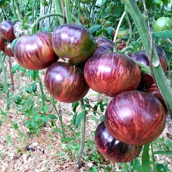 Второе название знаменитого томата: Звёздный истребитель Бифштекс Марши, представитель знаменитого проекта «Звёздные войны» (Star Wars). Крупноплодный салатный сорт биф-томата селекционера Марши Айзенберг (США) привлекает к себе внимание очень красивыми и вкусными плодами. Рекомендуется выращивать в теплицах и в открытом грунте. Среднеспелый, от всходов до созревания первого урожая 110-115 дней. Растения индетерминантные, в О/Г до 1,5 м, в теплице более 2 м. Плоды плоскоокруглые, с экстравагантно-пёстрой окраской: от розово-малинового до вишнёвого и необычного переплетения бордовых и зеленых полос, с антоцианом на плечиках, массой 180-250 г (отдельные – до 400 г). Мякоть винно-вишнёвая, мягкая и сочная. Вкус сбалансированный, сладкий, с пряной ноткой и приятной кислинкой. Все эти достоинства сорта сочетаются с высокой урожайностью (10-11 кг/м 2 в З/Г) и устойчивостью к комплексу болезней культуры.