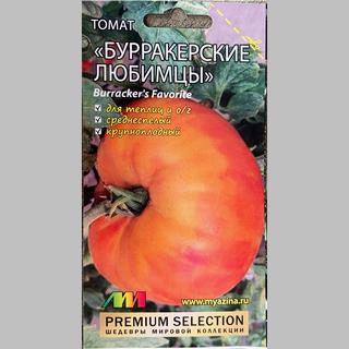 Бурракерские любимцы (Burracker’s Favorite) (США)– индетерминантный сорт. Высокорослые побеги растут до 1,8-2 м. Требуют подвязки, формировки, пасынкования. Мощные кусты дают 7 плодоносных ветвей с 5-6 крупными помидорами. Подвязывать следует побеги и кисти с томатами. Созревание наступает через 110-125 дней. Томаты  имеют крупные размеры, средняя масса варьируется от 250 до 500 г. Самые большие экземпляры с нижних стеблей достигают 600-700 г. Помидоры являются яркими биколорами – красные и желтые цвета переливаются не только на кожице, но и на срезе. Мясистая мякоть сладковатая, с легкой помидорной кислинкой. Плоды сочные, но не водянистые.